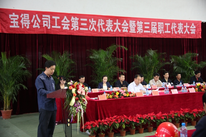 公司工會主席趙玉祥在會做工會工作報告。