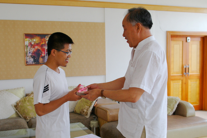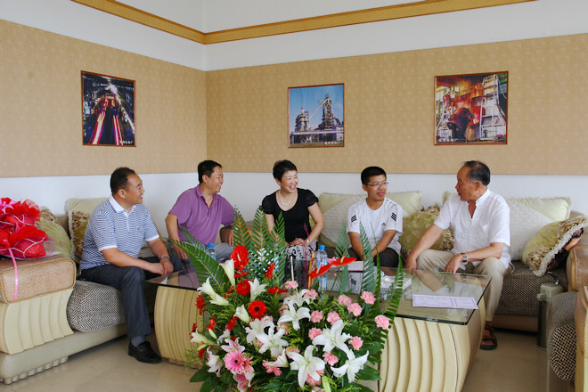7月26日,鞍山市理科高考試狀元滿書奎同學到公司看望董事長,表達其感激之情。家境貧困的他在第十三中學就讀期間成績優(yōu)秀,每年都得到公司提供的萬元以上的“寶得獎學金”。 現(xiàn)已被清華大學錄取,董事長再次獎勵其兩萬元。
