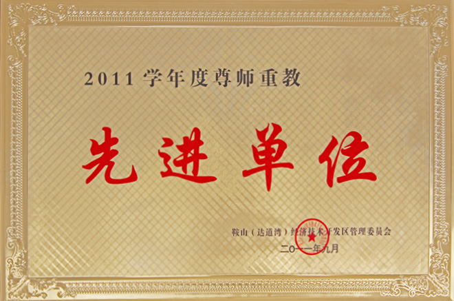 2011年9月,公司被鞍山(達道灣)經(jīng)濟技術(shù)開發(fā)區(qū)管理委員會授予“2011學(xué)年度尊師重教先進單位”。