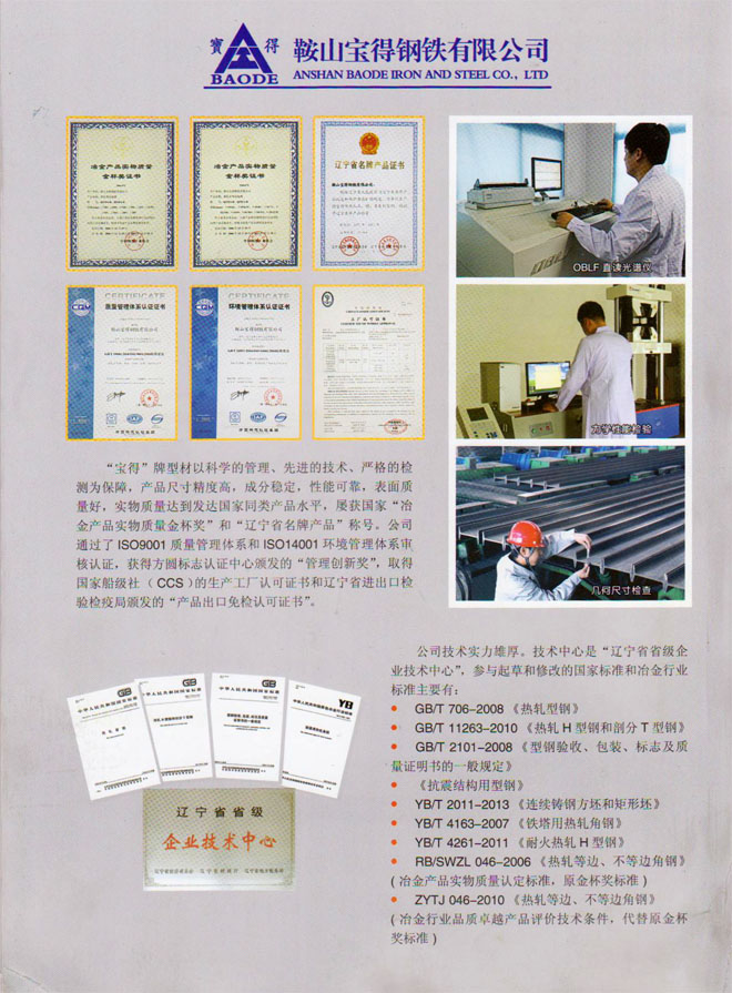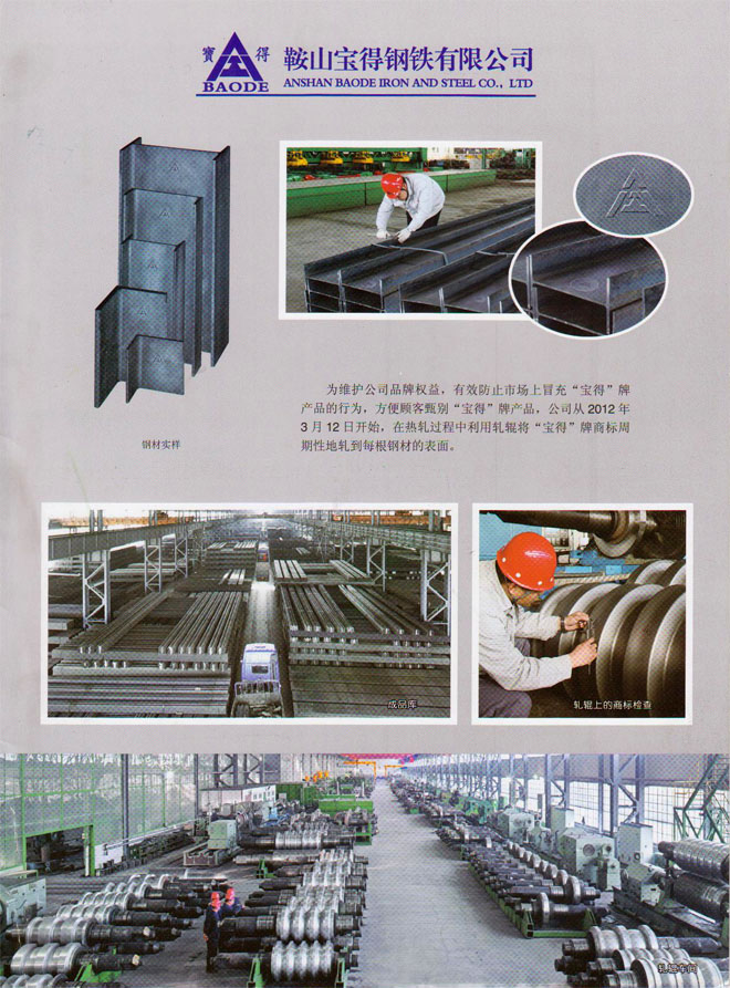 12月19日,公司新版產(chǎn)品樣本制作完成。該樣本全面介紹公司120萬噸型鋼、H型鋼生產(chǎn)線擁有國(guó)際先進(jìn)的工藝、設(shè)備情況,以及公司實(shí)施名牌戰(zhàn)略生產(chǎn)的高品質(zhì)型鋼產(chǎn)品。該樣本2開4頁,印刷精良,印刷3萬冊(cè),已開始面向客戶發(fā)放。