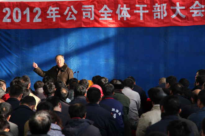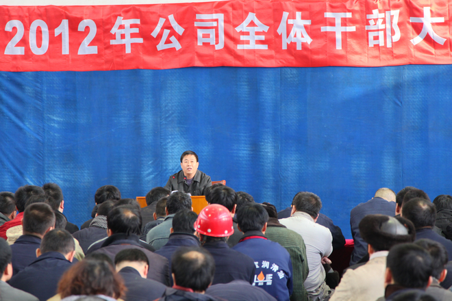 2012年1月11日,公司在網(wǎng)球場(chǎng)召開全體干部大會(huì),總經(jīng)理做上年度工作總結(jié)及當(dāng)前形勢(shì)分析,董事長(zhǎng)做題為“全面提升企業(yè)綜合實(shí)力 蓄勢(shì)待發(fā) 穩(wěn)中求進(jìn)”的重要講話。